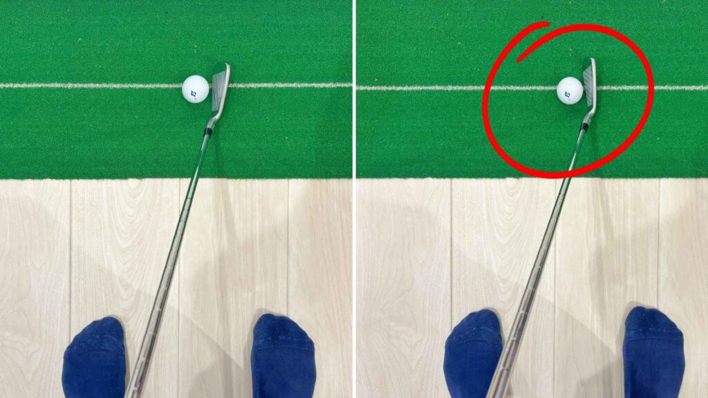 インパクトでフェースが開いていたら、絶対に右へ飛びます。