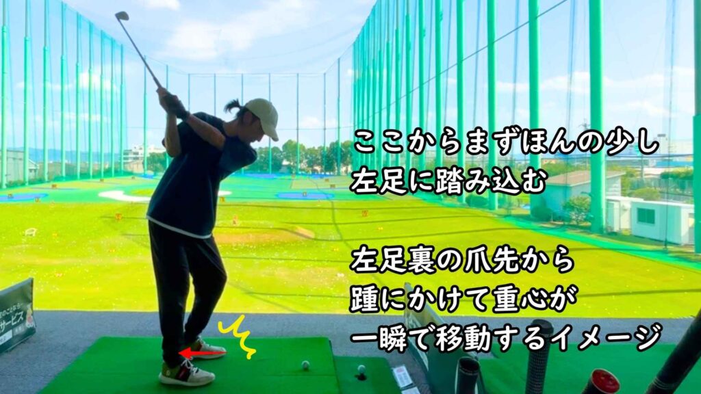 ・「ダフりが多いな」→ 腕でクラブを降ろしてる→左足への踏み込みが浅い