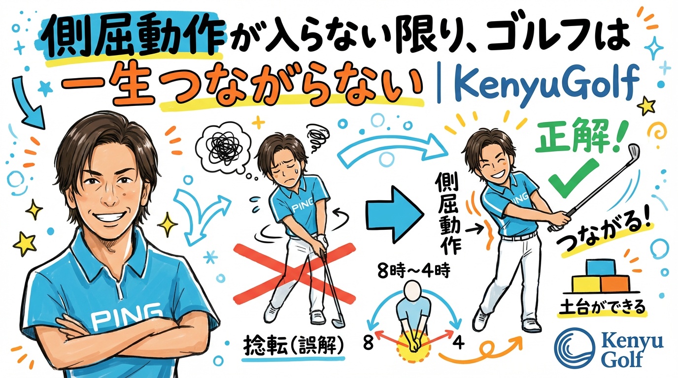 側屈の動作が8時〜4時の間で起こっている