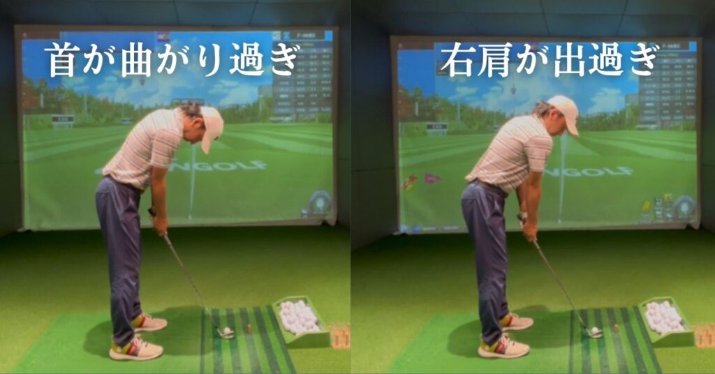 ここは意識して、右肩が出てないことが普通になるまで丁寧に打っていきます