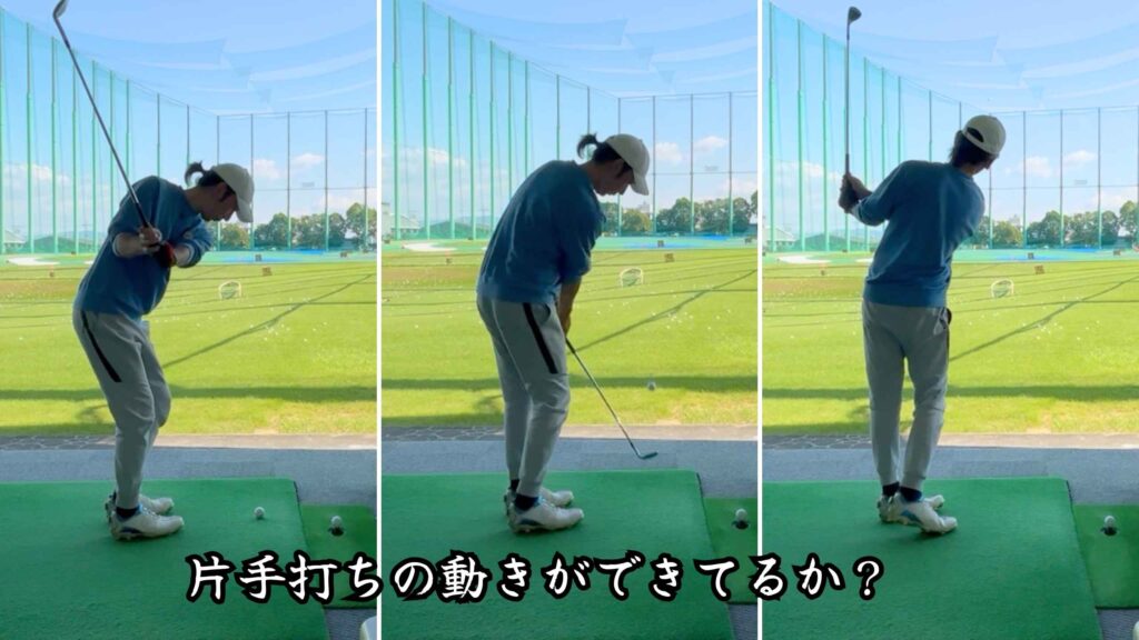 あとはこの片手打ちの動きをスイングに落とし込んでいくような作業になります。