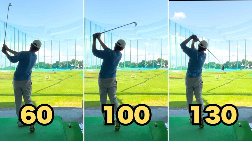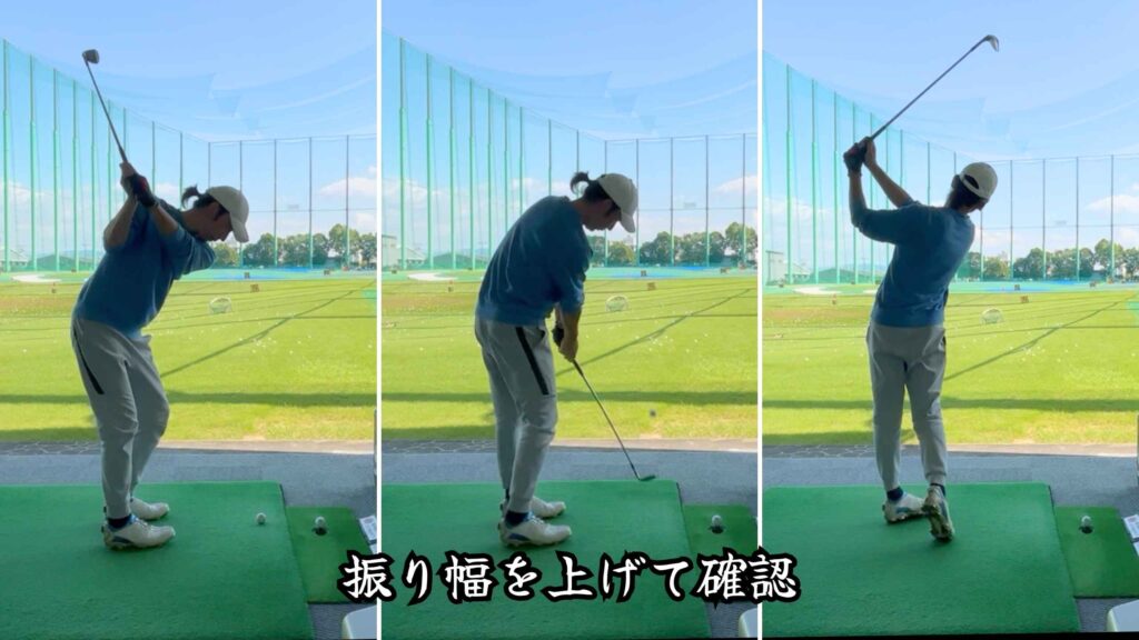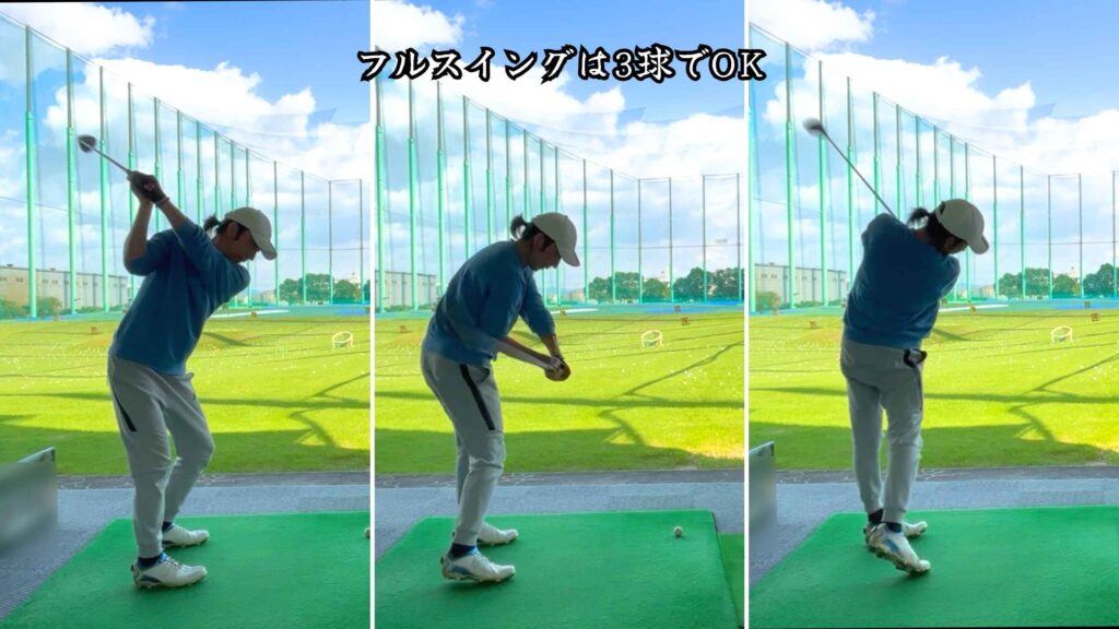 あと、フルスイングの振り幅で、スイングスピードを落として、半分の距離を打つっていう練習も最高。
